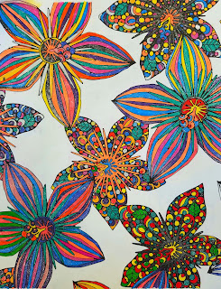 The above paintings were guided by Linda's 3 year old granddaughter's work which she sent to Linda in the mail. Linda transformed the imagery into paintings. Her granddaughter is going to be so surprised.