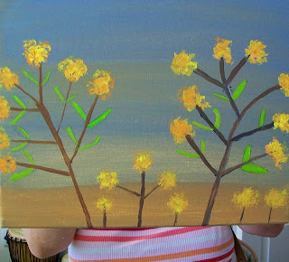 Sandra picked up this scrap piece of cardboard and brought it to the class. The final result is this amazing work of art which is very "Sandra" as in extraordinaire.